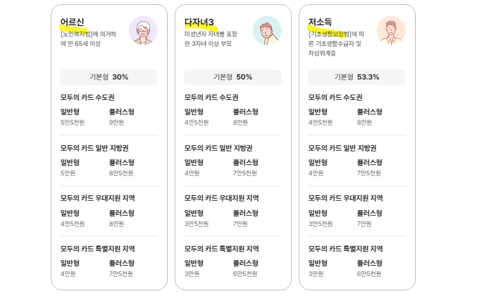 모두의카드는 일반형과 플러스형 두 가지가 있는데요, 직접 선택할 필요가 없이 시스템이 자동으로 가장 유리한 유형을 적용합니다.
